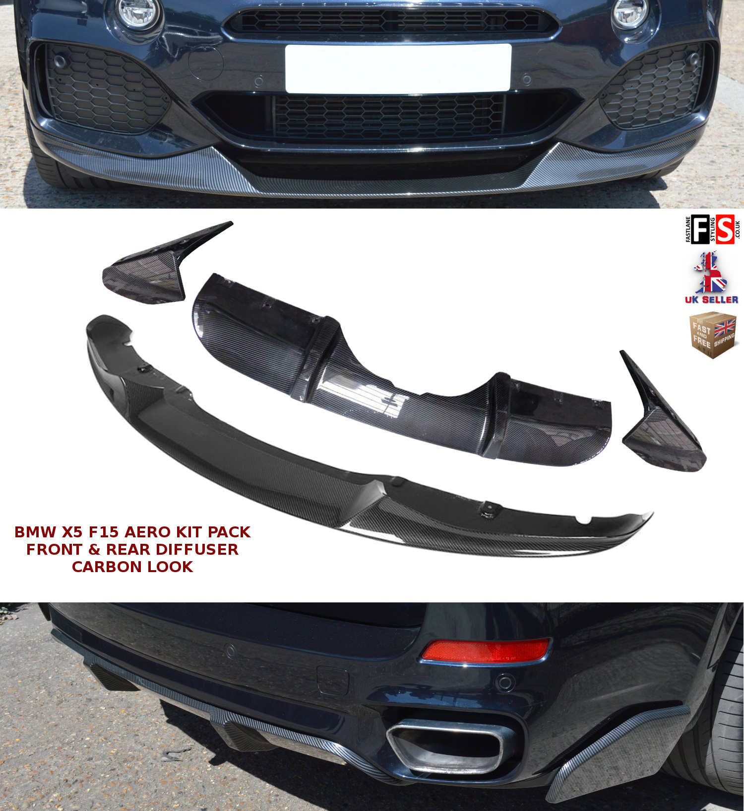 Bmw X5 F15 Aero Kit Front Splitter Lip Rear Diffuser Pack Carbon Fibre Look Ebay